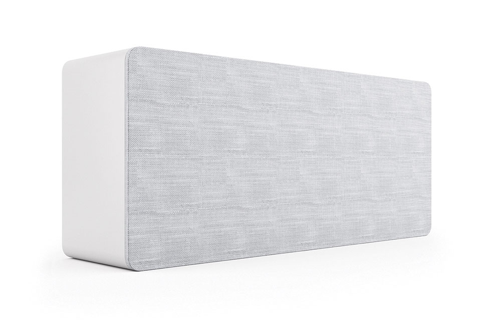 Erhältlich in Schwarz, Weiß oder Walnuss Vinylfurnier, wird der AE 105 mit rückseitigen Montageplatten, Schablonen, Wandabstandshaltern sowie schwarzen und hellgrauen Gittern geliefert, die sich mühelos in jedes Raumdekor integrieren lassen.
