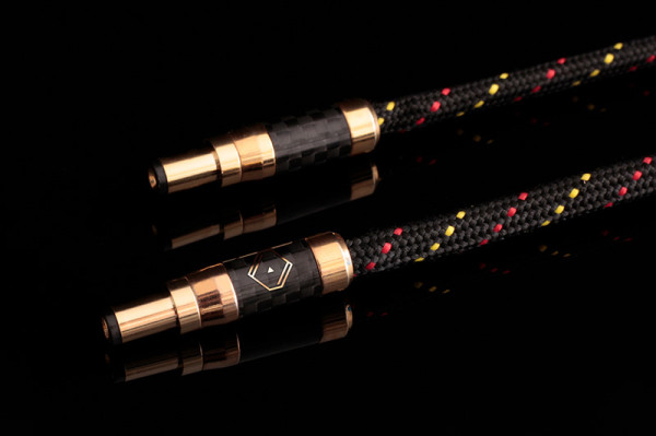 Robustes Gleichstromkabel mit störungsfreiem Kohlefasergehäuse und leitfähigen Materialien zur Aufwertung Ihrer Hi-Fi-Stromquelle.