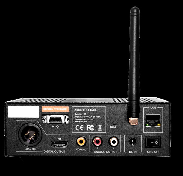 Ausgestattet mit AES/EBU, I2S, Koaxial für digitales Audio; Cinch (L+R) und 6,35 mm Kopfhörerbuchse für analoges Audio. Die 100Mbps Ethernet Verbindung arbeitet effizient mit einer NAS (Network Attached Storage) und anderen Netzwerk-Streaming-Anwendungen zusammen.