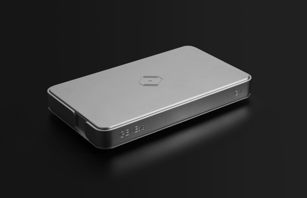 Das hochmoderne Gehäusedesign besteht aus zwei Schichten unterschiedlicher, sorgfältig ausgewählter Materialien: Die innere Schicht ist aus verzinktem Stahl, die äußere aus einer dicken, hochwertigen Aluminiumlegierung. Diese extravagante Konstruktion maximiert die Abschirmung und Kontrolle von Wirbelströmen und dämpft gleichzeitig Vibrationen und Störgeräusche. Das schlanke, moderne Design verleiht dem Genesis GX einen hohen ästhetischen Wert und macht ihn zu einem funktionalen Kunstwerk der Audiotechnik.